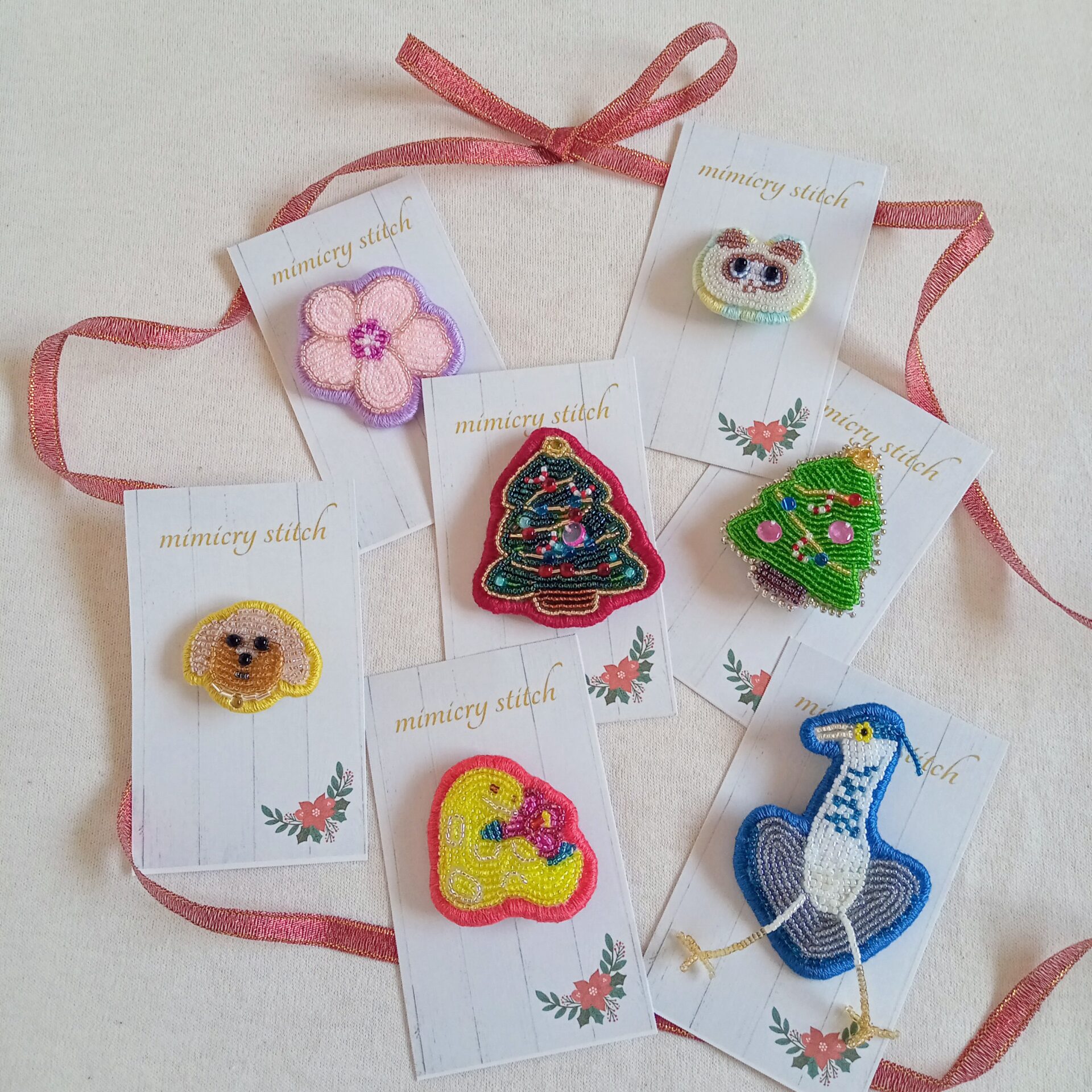 ビーズ刺繍アクセサリー。クリスマス限定ブローチもご用意しています。