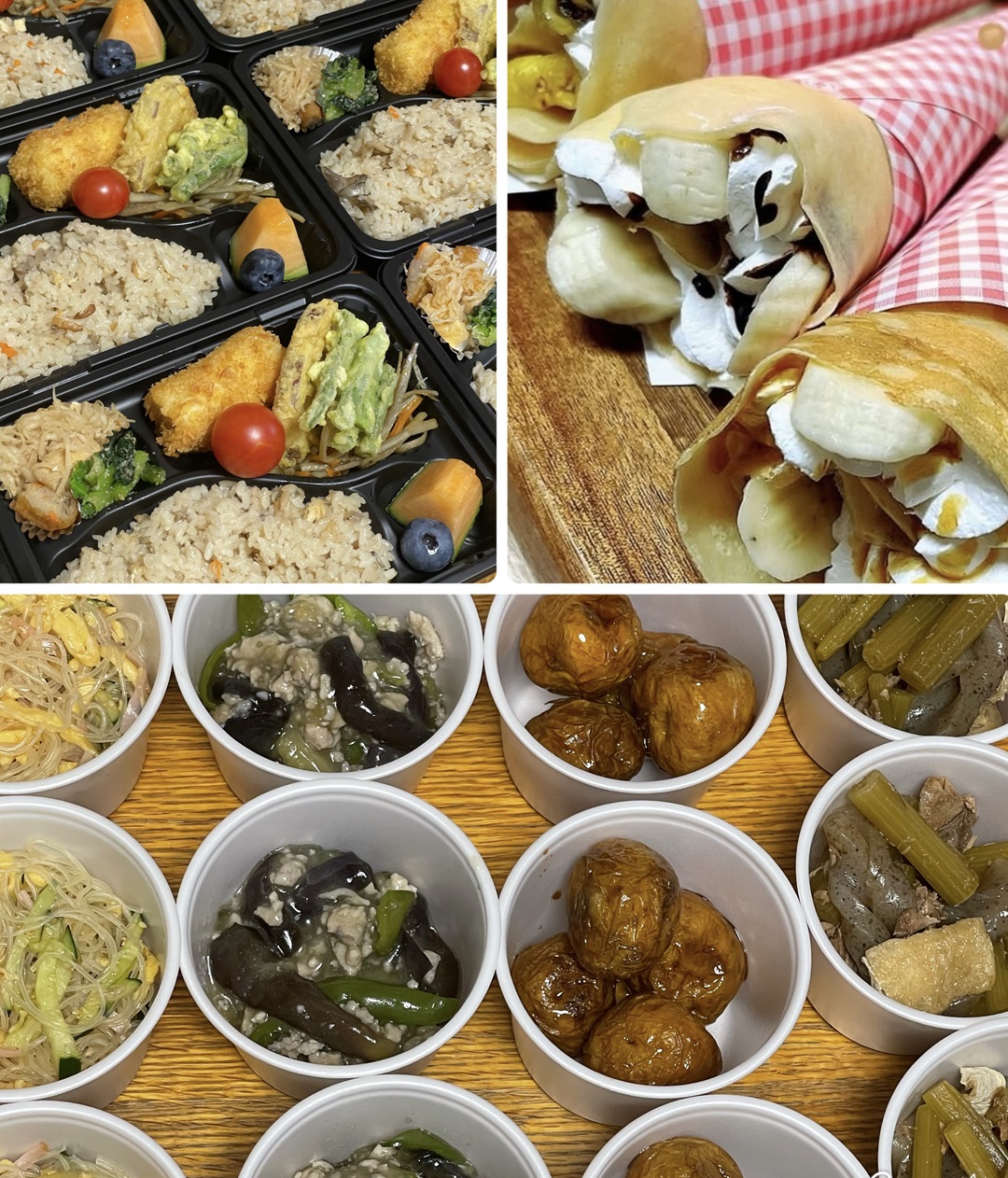 お弁当、お惣菜(300円~800円)、クレープ(400円~600円)の販売