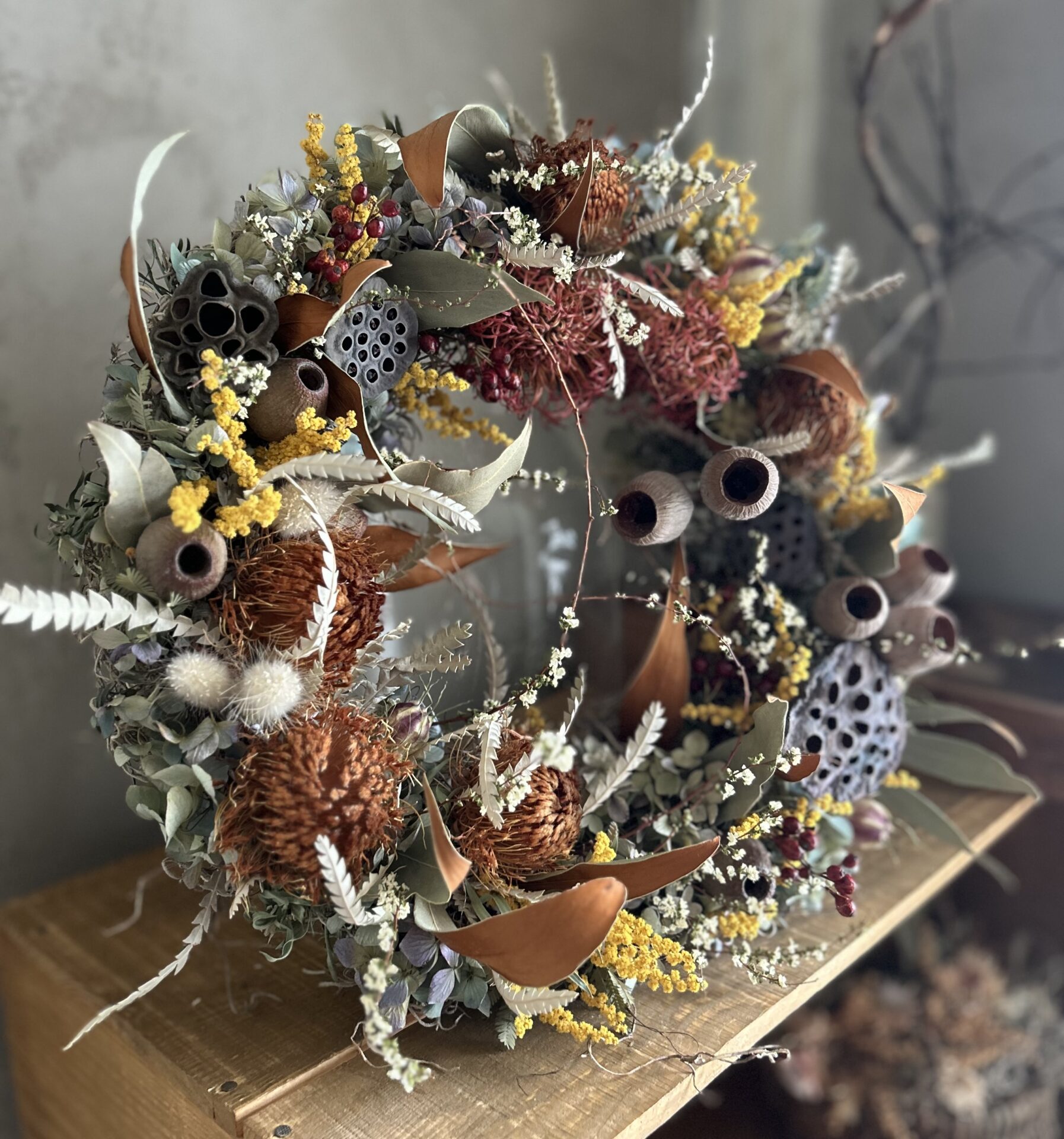 ドライフラワーを使ったリースやアレンジメントを制作しております。自然の風景を切り抜いた様な、ナチュラルな風合いが特徴です。