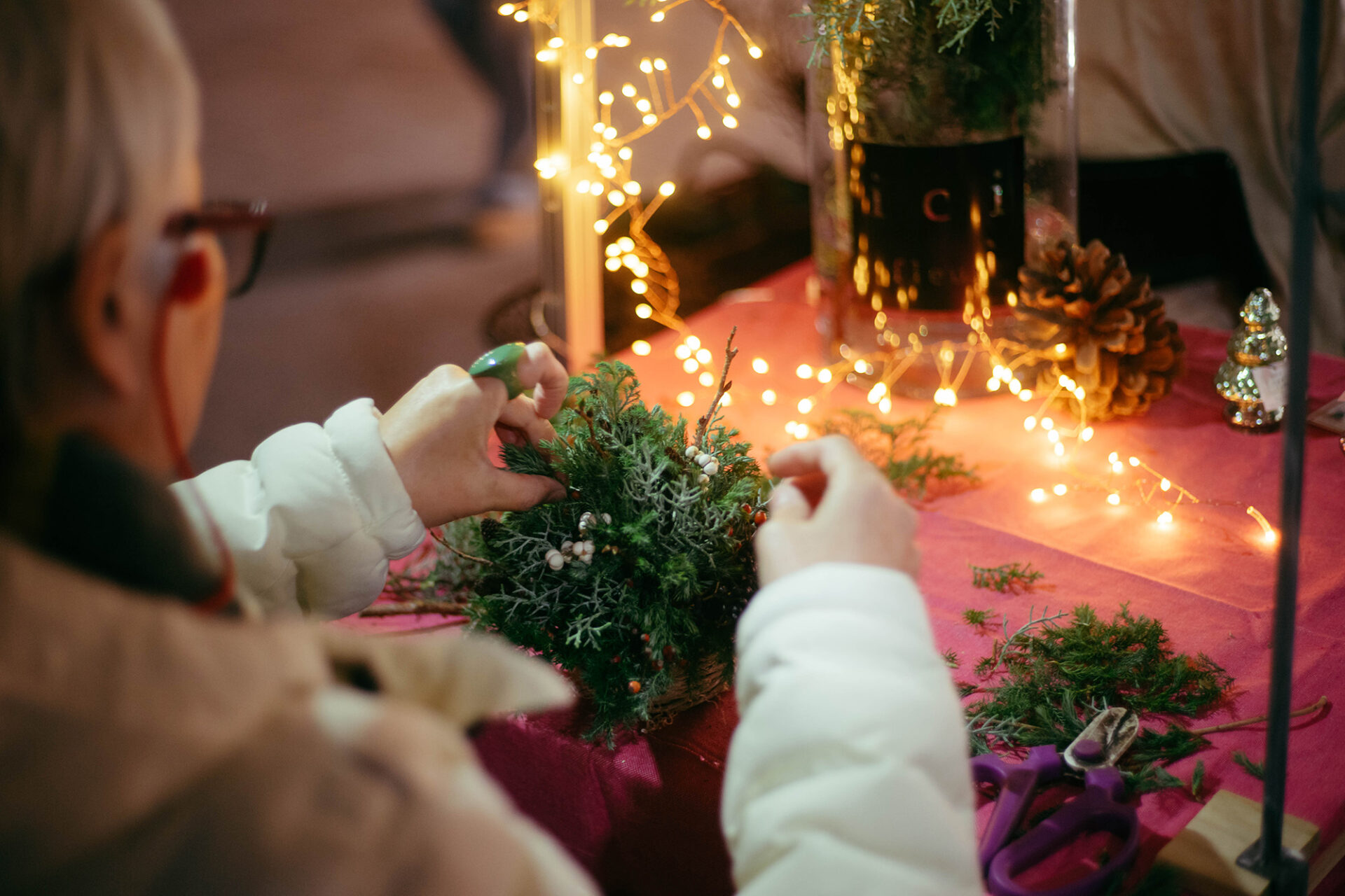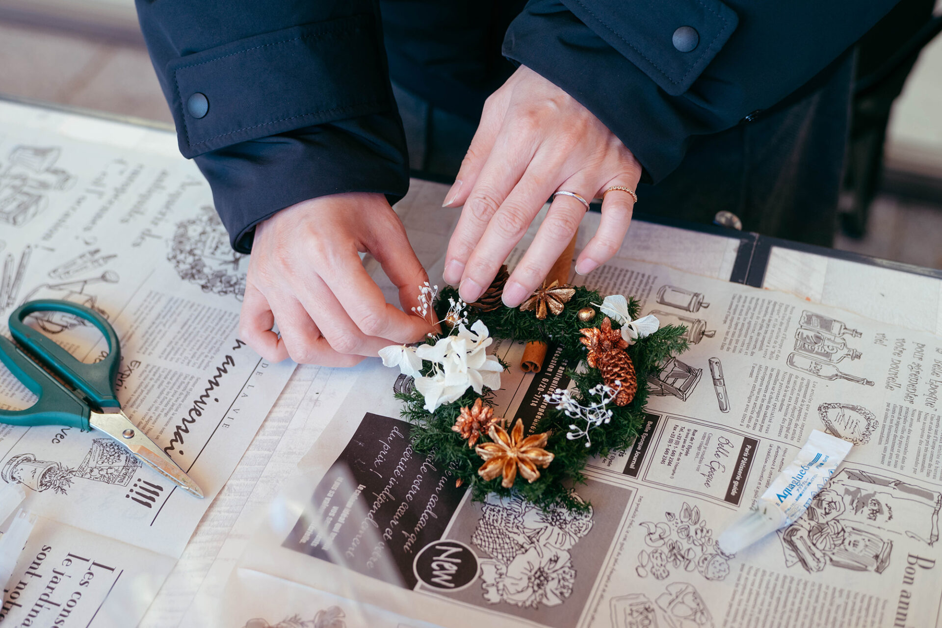ワークショップに参加した方は、「クリスマスの雰囲気って、ワクワクしますよね」と微笑んでいました。こういった体験に参加するのが好きといい、慣れた手つきで飾りを貼り付けていきます。こうして完成した作品も、クリスマス当日には今日の思い出とともに、おうちを華やかに彩ってくれることでしょう。