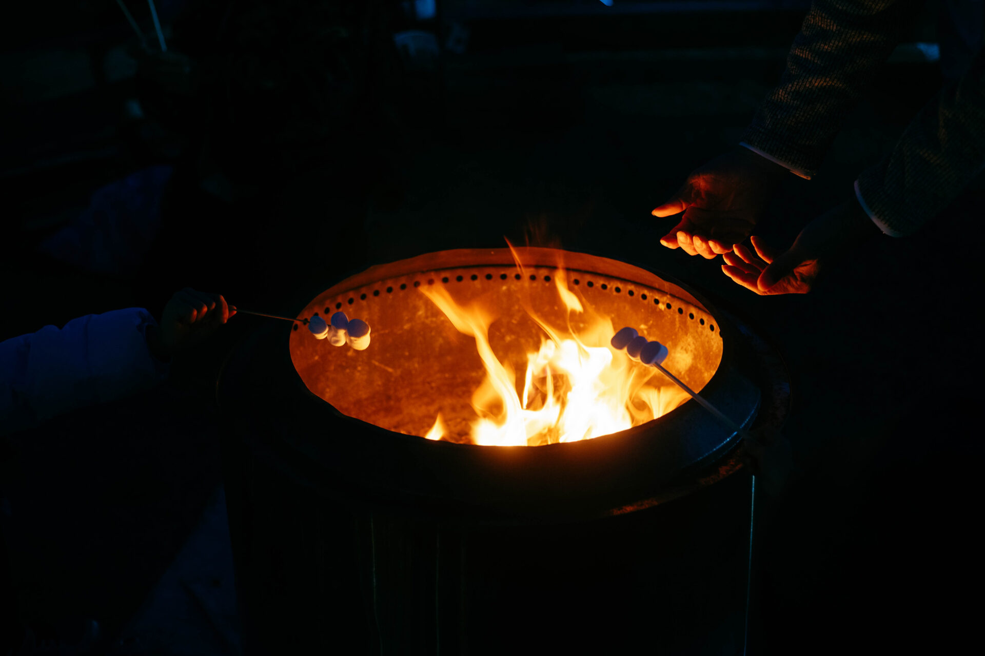 焚火の周りには、パチパチとはじける火の音に混じって、子どもたちの声が飛び交っていました。火おこしに夢中になって何回も挑戦してみたり、焼いたマシュマロを食べて「もっかい食べたい!」とねだる声が響いたり。