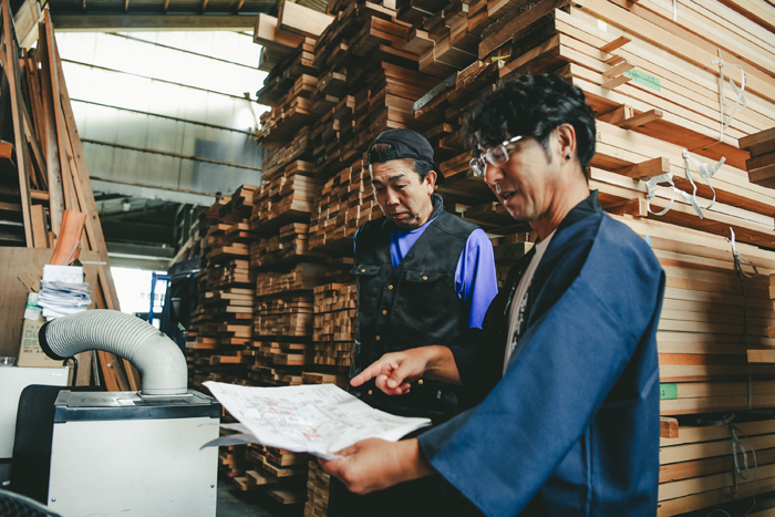 図面通りに材木を並べて揃えて配達するのは、実は私ではなく、とても腕のいいスタッフがいて、そのスタッフだからこそできる仕事なんです。会社は私ひとりで成り立つものではなく、現場を支えてくれるスタッフのおかげで続けられています。本当にありがたいことです。